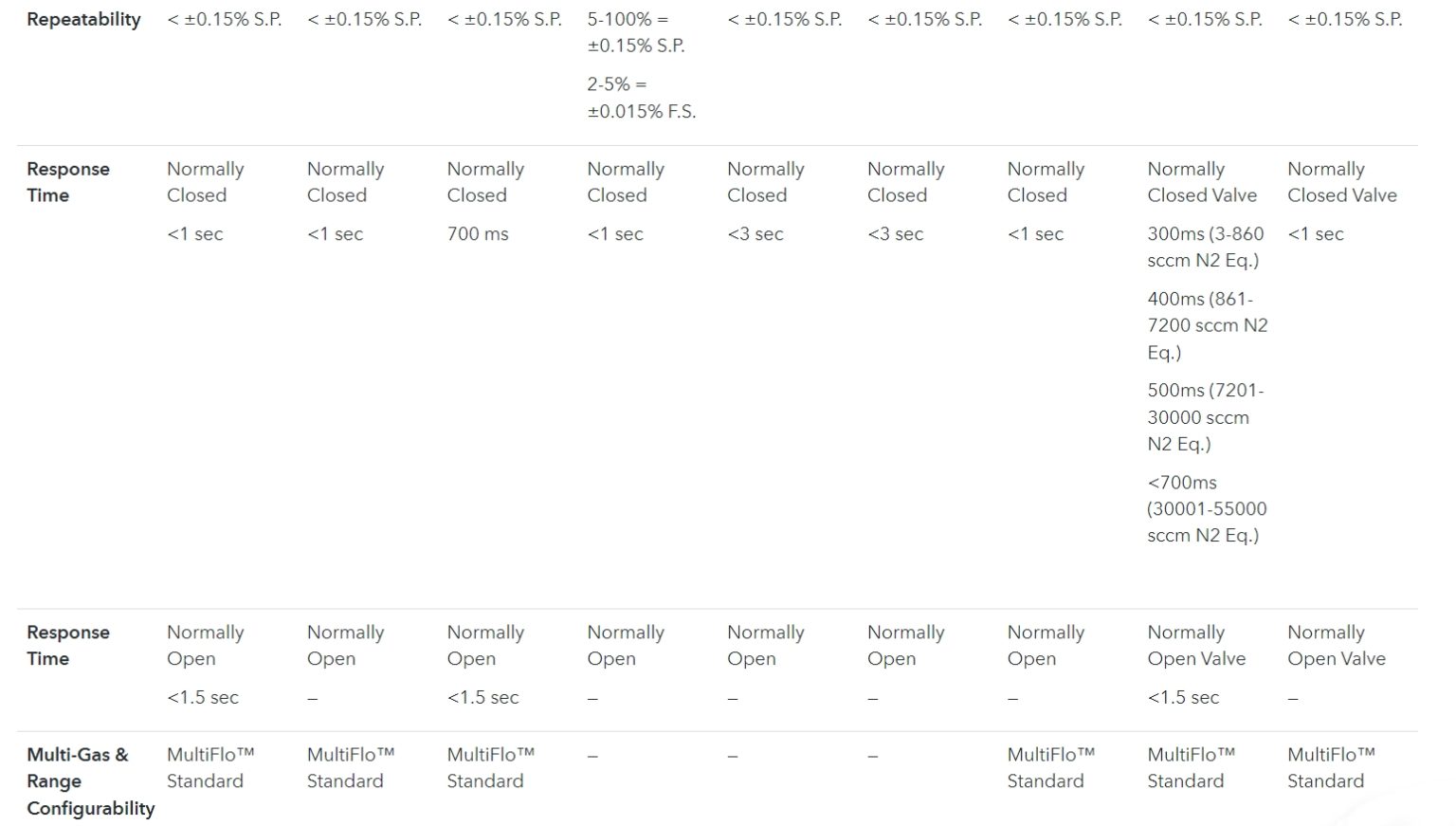 - MultiFloTM gas and range programmability allows for thousands of gas types and range combinations without removing the MFC from the gas line or compromising accuracy