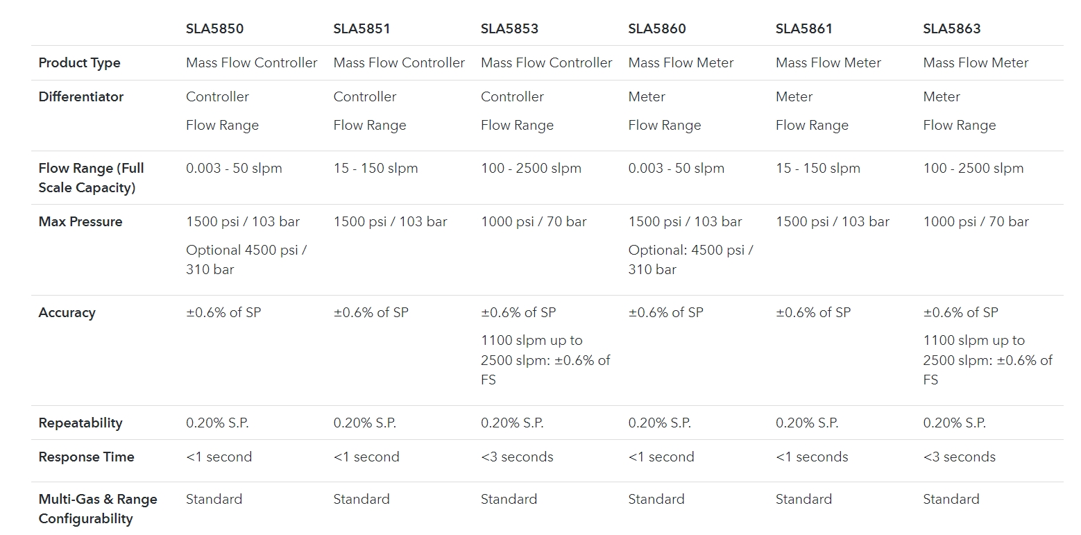 SLA5800 Series Elastomer Sealed Thermal Mass Flow Controllers & Meters