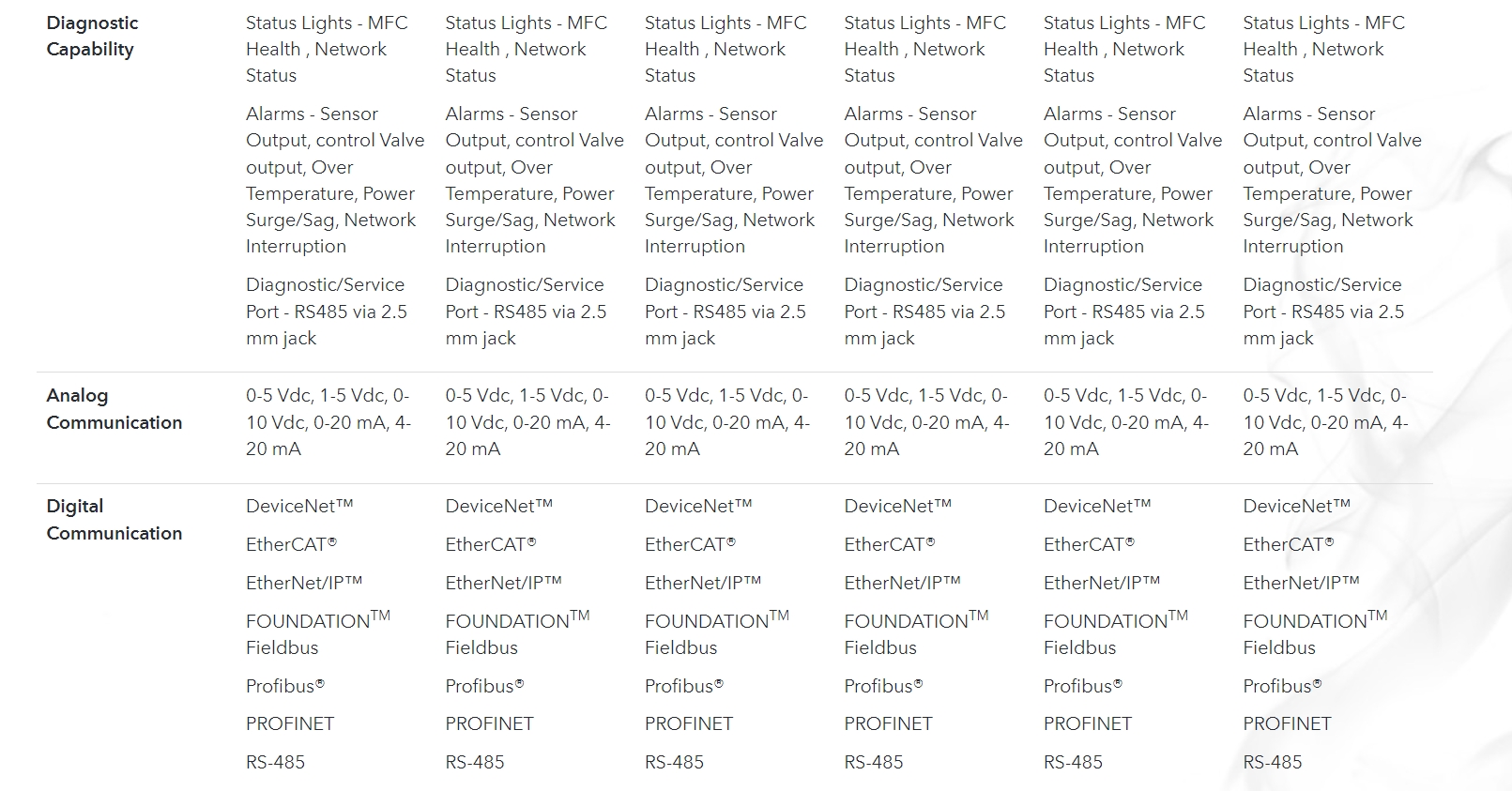- Enhanced valve shut-off, wide turndown, certifications and approvals (USP Class VI/ADI-free) for elastomeric materials in the MFC’s gas stream