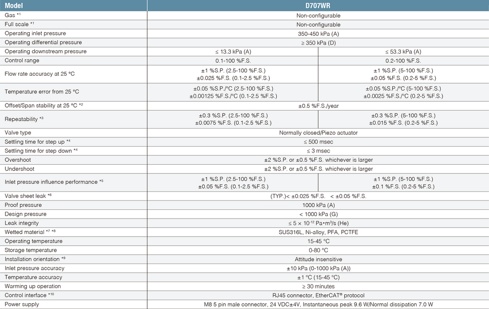 The D700WR incorporates a newly designed restrictor that is tailored for precise control in a wide range of applications, delivering high accuracy performance through the implementation of CRITERION™ technology. With the capability to control flow rates as low as 0.1% of the full scale range, the D700WR allows users to optimize the flexibility of their gas delivery system. For instance, when multiple MFCs are installed for high and low flow rate control, users can reduce the number of MFCs and repurpose another MFC in the same position for a different application.