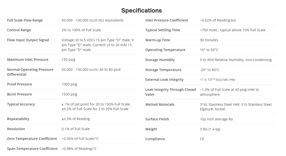 MKS G-Series Fast and Repeatable Mass Flow Controllers GM100A Metal-sealed 50-100 slm Mass Flow Controllers